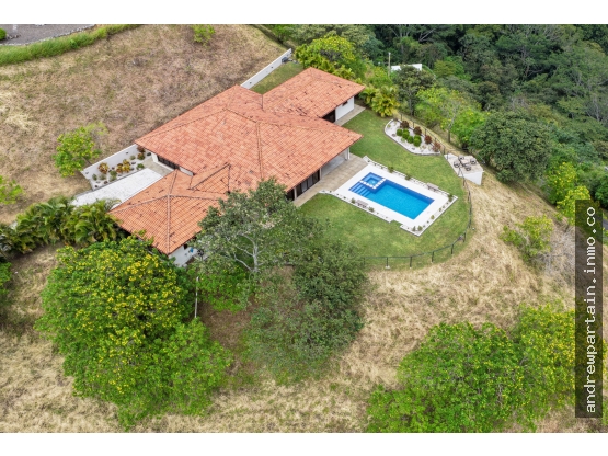 Casa de estilo mediterráneo con acabados modernos eclécticos en Hacienda Atenas, con una de las mejores vistas de esta zona de la ciudad. Esta casa, muy bien cuidada, se encuentra a solo 8 minutos del centro y ofrece impresionantes vistas de la campiña ateniense. La casa está orientada al sur, hacia Puriscal, y tiene una vista de casi 300 grados que incluye algunas vistas del Océano Pacífico y gran parte de la capital, San José. El largo camino de entrada privado conduce a una cochera para dos autos con amplio espacio de almacenamiento e infraestructura eléctrica para un taller en casa. La entrada formal conduce a una amplia sala de estar-comedor que exhibe muy bien la carpintería que se encuentra en toda la casa, incluyendo el techo de listones de madera interior y exterior, la carpintería en toda la amplia cocina y los baños, y los muebles del dormitorio. La cocina cuenta con una excelente iluminación, ideal para un chef, con una pieza central ultramoderna sobre la gran isla de la cocina.