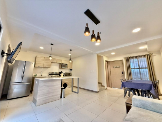- Incluye electrodomésticos (refrigeradora, cocina, extractor, microondas, horno, lavadora y secadora).